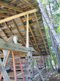 The Forge’s first step was to reset the rock foundation pillars. Next, was to secure the roof with a ridge bean and support. Trees from the farm were used for this stabilization. Wheeler describes that while the poles look new, eventually they will weather and blend into the existing older wood. In the near future, the group will add underpinning to the building for security and aesthetics. As time permits, a forge and anvil will be installed along with work tables and benches.