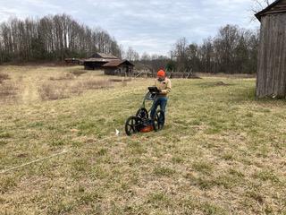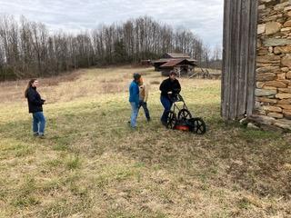 Appalachian State University’s Department of Geological and Environmental Sciences visited the farm in February 2022 and conducted a ground-penetrating radar (GPR) survey to help locate historic infrastructure, including the kitchen. GPR is a type of shallow geophysics.